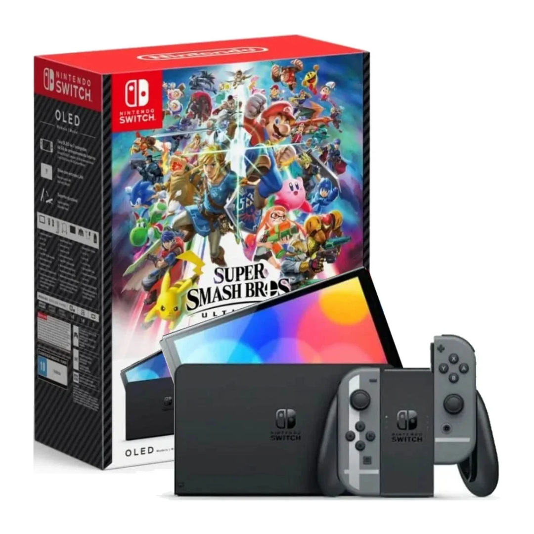 Nintendo Switch™ – Modelo OLED: Edição Mario vermelho Comece sua aventura com um console inspirado no Mario Entre em um mundo de jogos com o console Nintendo Switch – Modelo OLED: console Edição Mario vermelho. Esta edição inclui o console, a base e os controles Joy-Con™, todos na icônica cor vermelha do Mario. Uma silhueta do Mario entra em ação na parte de trás da base. Olhe atentamente e você também encontrará algumas moedas escondidas! Jogue em casa ou em qualquer lugar com uma tela OLED com cores vibrantes Jogue na sua TV em casa ou jogue no modo portátil na tela OLED de 7 polegadas com cores vibrantes do Nintendo Switch - Modelo OLED. O console também possui 64 GB de armazenamento interno (parte da memória é reservada para uso do próprio console), áudio aprimorado nos modos portátil e semiportátil, um amplo suporte ajustável e uma base com uma porta LAN integrada (cabo LAN vendido separadamente). Desfrute de três modos em um console Modo TV: conecte seu console à TV usando a base incluída para desfrutar de uma experiência de jogo tradicional em HD. Modo portátil: leve seus jogos para sua próxima aventura de viagem e divirta-se jogando em uma tela OLED de 7 polegadas (17,78 cm), que realça as cores. Modo semiportátil: use o suporte amplo e ajustável para posicionar a tela e desencaixe os controles Joy-Con™ incluídos para aproveitar o tempo de jogo mesmo sem uma TV. Jogos para toda a família Os consoles Nintendo Switch são o lar de jogos como Super Mario Bros.™ Wonder, Mario Kart™ 8 Deluxe e muitos outros estrelados por Mario e seus amigos. E não se esqueça de séries como Animal Crossing™, The Legend of Zelda™, Splatoon™, Pikmin™ e muito mais! Conecte-se e joguem juntos Compartilhe os sorrisos! Você pode se juntar a outro jogador em um console*, conectar seus consoles* ou jogar online** no modo multijogador os jogos favoritos, como o jogo Super Smash Bros.™ Ultimate. Controles Joy-Con incluídos Os dois controles Joy-Con incluídos permitem que você jogue títulos no modo multijogador imediatamente – basta passar um controle para um amigo e pronto. Anexe-os à tela para o modo portátil ou use ambos como um único controle ao jogar na tela grande. Além disso, os controles de movimento integrados realmente colocam você no jogo em títulos como Super Mario Party™.