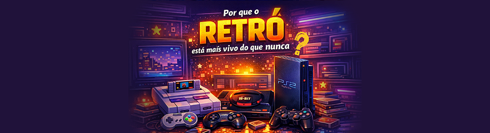 Se você tem a sensação de que o retrô nunca esteve tão em alta, não é impressão. Consoles clássicos, cartuchos, mídias físicas e jogos antigos voltaram com força total — e por vários bons motivos.